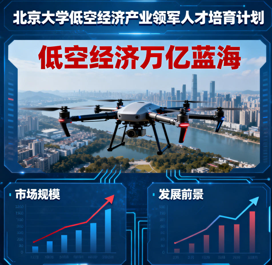 2024 年,低空经济首次被写入政府工作报告,标志着其作为“新质生产力” 的核心引擎地位得到国家层面的认可。据工信部预测,至 2030 年,中国低空经济规模将突破 2.5 万亿元,广泛覆盖物流、文旅、应急、农业等八大核心场景。在此背景下,北京大学集成电路学院凭借国家级智库资源与前沿技术积淀,携手工信部、民航局等权威机构,隆重推出“低空经济产业领军人才培育计划”。本计划旨在助力企业家在政策红利窗口期(2025-2027)抢占先机,构建行业话语权,引领产业升级。